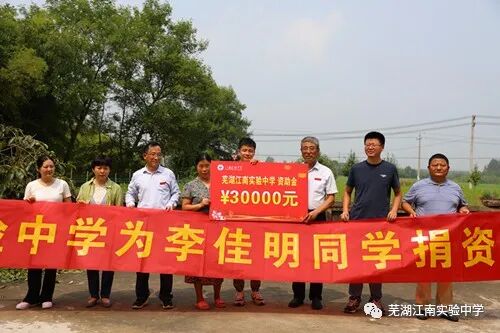2023年8月17日上午,陽光普照,蕪湖江南實驗中學孫冬青校長一行,在三山經(jīng)開區(qū)教育文體局教育科副科長衛(wèi)琴帶領下,前往高安街道草山行政村山旁村民組,給考上西北農(nóng)林科技大學的李佳明同學送去助學款。