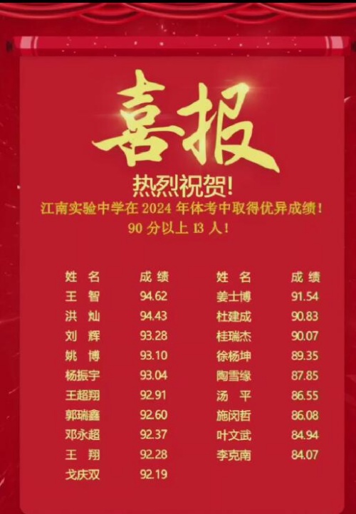2024年江南實驗中學(xué)體育高考捷報最高94.62分!90分以上13人!