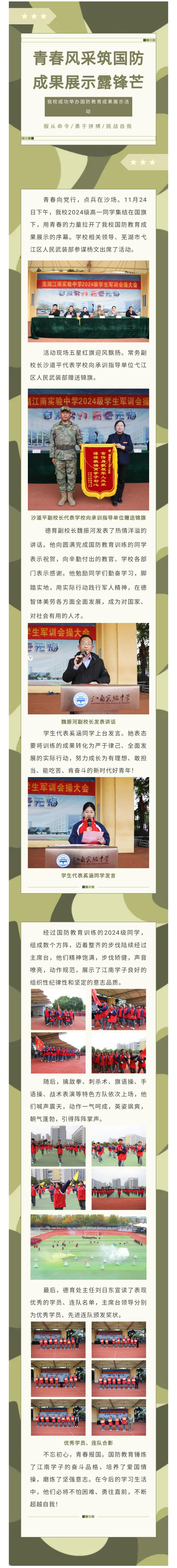 青春風采筑國防 成果展示露鋒芒——我校成功舉辦國防教育成果展示活動