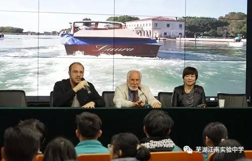 為促進中意文化藝術(shù)交流,1月12日上午,威尼斯國立美術(shù)學院院長Giuseppe La Bruna (布魯納)、威尼斯國立美術(shù)學院中國學習中心秘書長Piergiorgio Piazza (皮爾杰)及隨行工作人員一行4人來我校講學,董事長、原安師大美術(shù)學院教授汪洋先生全程陪同,我校高三美術(shù)班全體同學在六樓報告廳聆聽報告。